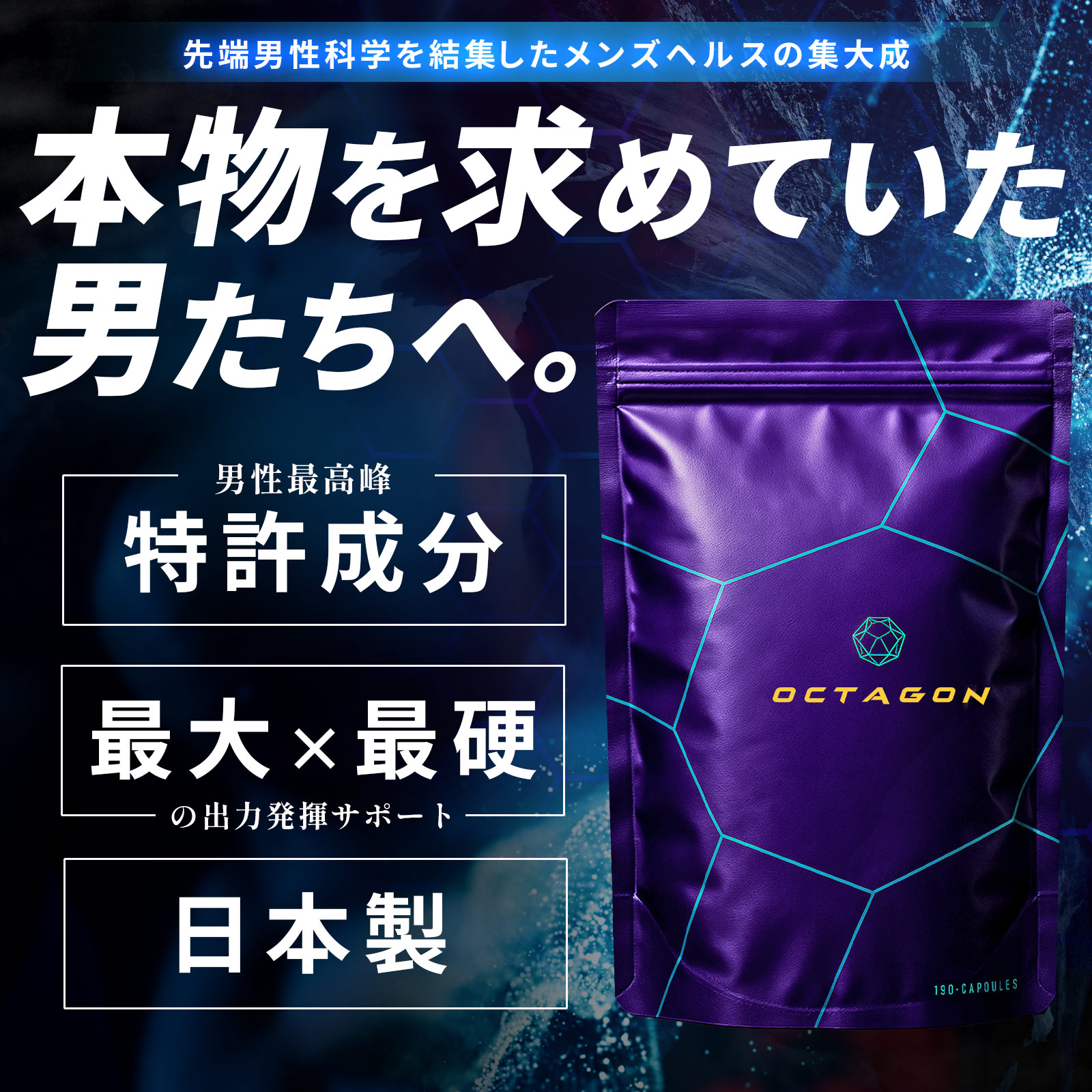 ✅ 【本気の男に本物の力】OCTAGON(オクタゴン)は悩み多き現代男性に足りない成分のみを厳選して配合した、完全実力主義の国産サプリです。